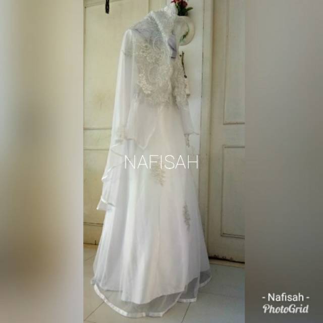 Terdapat detail payet hingga menjuntai ke bawah. Gaun pengantin syar'i sederhana tentu bisa menjadi pilihan terbaik bagi para muslimah yang akan melangsungkan pesta pernikahan. Gaun minimalis ini bisa kamu pilih untuk kesan simpel dan sederhana. Custom gaun pengantin/baju akad nikah/set walimah syar'i. Gaun yang simpel dan sederhana akan terlihat lebih menawan dengan hiasan bunga yang disematkan di kerudung sang pengantin.
